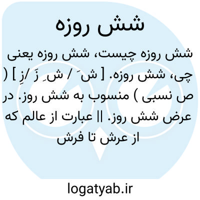 شش روزه. [ ش َ / ش ِ زَ /زِ ] ( ص نسبی ) منسوب به شش روز. در عرض شش روز. || عبارت از عالم که از عرش تا فرش در شش روز ساخته شده است. ( آنندراج ) ( غیاث اللغات ):