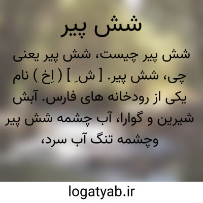 شش پیر. [ ش ِ ] ( اِخ ) نام یکی از رودخانه های فارس. آبش شیرین و گوارا، آب چشمه شش پیر وچشمه تنگ آب سرد، در نزدیکی قریه شهداء اردکان ممزوج به رودخانه شش پیر گردد. ( از فارسنامه ناصری ).