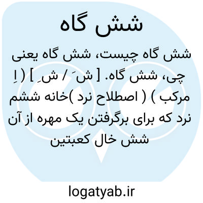 شش گاه. [ ش َ / ش ِ ] ( اِ مرکب ) ( اصطلاح نرد )خانه ششم نرد که برای برگرفتن یک مهره از آن شش خال کعبتین باید. ( یادداشت مؤلف ). شش خان: امیر دو مهره در ششگاه داشت و احمد بدیهی دو مهره در یک گاه. ( چهارمقاله ). رجوع به شش خان و شش خانه شود.