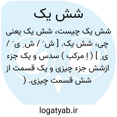 شش یک. [ ش َ / ش ِ ی َ / ی ِ ] ( اِ مرکب ) سدس و یک جزء ازشش جزء چیزی و یک قسمت از شش قسمت چیزی. ( ناظم الاطباء ). سدیس. سدس. دانگی. یک دانگ. ( یادداشت مؤلف ).