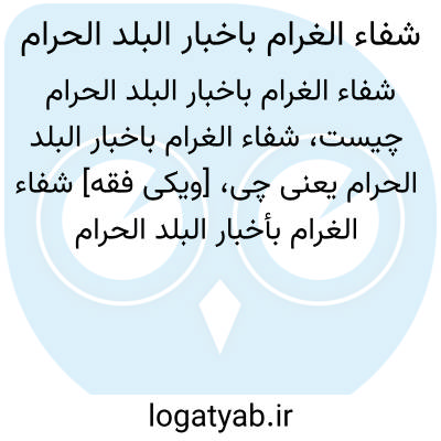 [ویکی فقه] شفاء الغرام باخبار البلد الحرام (کتاب). شفاء الغرام باخبار البلد الحرام اثر تقی الدین ابوالطیب محمد بن احمد بن علی الحسنی الفاسی (۷۷۵- ۸۳۲) است که آقای محمد مقدس آن را از عربی به فارسی ترجمه نموده است. پیرامون تاریخ مکه مکرمه است که از محتوای تاریخ غنی و دقیقی بر خوردار است و محققانی بر آن مقدمه نوشته اند.