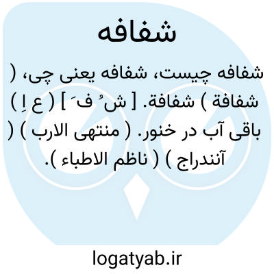 ( شفافة ) شفافة. [ ش ُ ف َ ] ( ع اِ ) باقی آب در خنور. ( منتهی الارب ) ( آنندراج ) ( ناظم الاطباء ). باقی آب در مشربه. ( مهذب الاسماء ). باقی آب در کوزه و ظرف. ( یادداشت مؤلف ) ( از اقرب الموارد ).