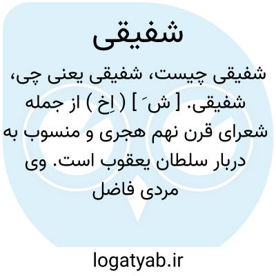 شفیقی. [ ش َ ] ( اِخ ) از جمله شعرای قرن نهم هجری و منسوب به دربار سلطان یعقوب است. وی مردی فاضل و کامل بود و در مباحثه مجادله مینمود. بیت زیر از اوست: