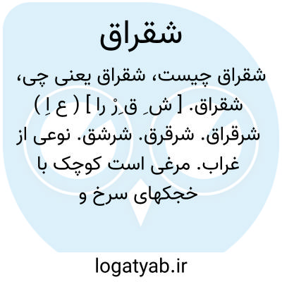 شقراق. [ ش ِ ق ِرْ را ] ( ع اِ ) شرقراق. شرقرق. شرشق. نوعی از غراب. مرغی است کوچک با خجکهای سرخ و سبز و سیاه و سپید، و از اینجاست که آن را «اخیل » هم نامند و آن در زمین حرم و روم و شام و خراسان ونواحی آن یافت شود. چون تلخه آن بر زر ناقص عیار گداخته ریزند سرخ و کامل عیار گردد. ( از منتهی الارب ) ( آنندراج ). عَوْهَق. ( تاج العروس ). مرغی است بقدر فاخته سبز و بدبوی و به فارسی سبزه قبا نامند و در تنکابن کراکر گویند. شرقراق. شرقرق. طیرالعراقیب. اخطب. شرشق. قاریه. زاغ کبود. مرغی است که او را به فال بد دارند. ( یادداشت مؤلف ). کاسکینه. مرغ سیاه. ( زمخشری ). کراج. ( دهار ) ( مهذب الاسماء ). اخیل. ( بحر الجواهر ).مرغی است چندِ کبوتر و رنگ آن بین سرخ و سبز و سیاه. از اول نیسان به سرزمین شام می آید و تا آخر تابستان در آنجا سکونت دارد. و بیشتر در شکاف درختان و دیوارها بسر میبرد. بدبو و بسیارخوان است. ( از تذکره داود ضریر انطاکی ص 222 ). مرغی است سرخ و سپید و سبز. ( از اقرب الموارد ). بلواسه و سنقره گویند، به پارسی کاسکینه و به شیرازی کاسه شکنک گویند. ( از ذخیره خوارزمشاهی ) ( تحفه حکیم مؤمن ). شیرگنجشک. ( فرهنگ فارسی معین ). و رجوع به شیرگنجشک و مترادفات دیگر شود.