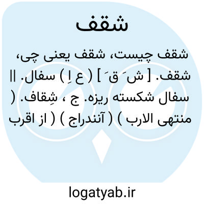 شقف. [ ش َ ق َ ] ( ع اِ ) سفال. || سفال شکسته ریزه. ج، شِقاف. ( منتهی الارب ) ( آنندراج ) ( از اقرب الموارد ) ( ناظم الاطباء ).