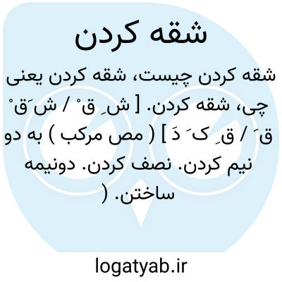 شقه کردن. [ ش ِ ق ْ / ش َق ْ ق َ / ق ِ ک َ دَ ] ( مص مرکب ) به دو نیم کردن. نصف کردن. دونیمه ساختن. ( یادداشت مؤلف ). دوپاره کردن. ( فرهنگ فارسی معین ): تو مرا با شمشیر شقه میکنی ؟ آنکه مرا شقه بکند هنوز به دنیا نیامده است. ( امیر ارسلان چ محجوب، جیبی ص 201 ).