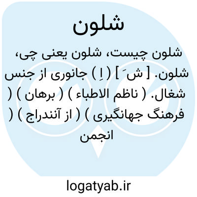 شلون. [ ش َ ] ( ع اِ ) در عربی چاروایی را گویند که گرسنه و لاغر باشد و بعضی چاروای فربه را گفته اند و بعضی چاروایی را گویند که نه فربه و نه لاغر باشد. ( از فرهنگ جهانگیری ) ( برهان ).