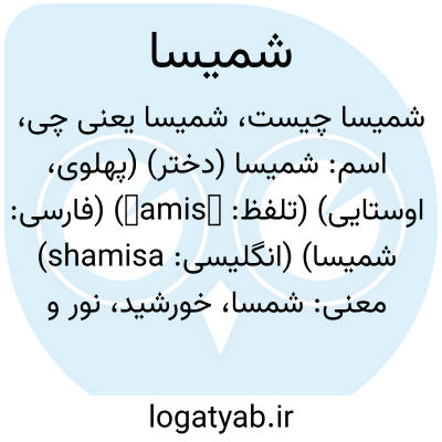 اسم: شمیسا (دختر) (پهلوی، اوستایی) (تلفظ: šamisā) (فارسی: شميسا) (انگلیسی: shamisa)