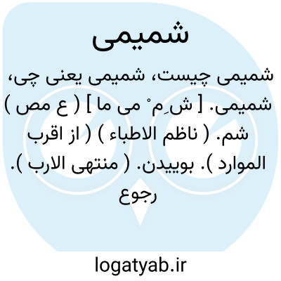 شمیمی. [ ش ِم ْ می ما ] ( ع مص ) شم. ( ناظم الاطباء ) ( از اقرب الموارد ). بوییدن. ( منتهی الارب ). رجوع به شم شود.
