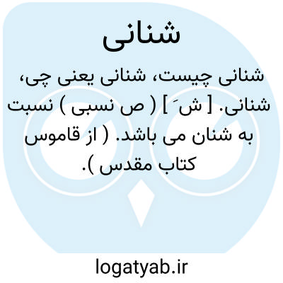شنانی. [ ش َ ] ( ص نسبی ) نسبت به شنان می باشد. ( از قاموس کتاب مقدس ).