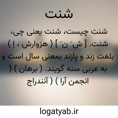 شنت. [ ش َ ن َ ] ( هزوارش، اِ ) بلغت زند و پازند بمعنی سال است و به عربی سنه گویند. ( برهان ) ( انجمن آرا ) ( آنندراج ).
