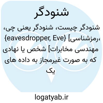 {eavesdropper, Eve} [رمزشناسی، مهندسی مخابرات] شخص یا نهادی که به صورت غیرمجاز به داده های یک شبکۀ ارتباطی دسترسی می یابد