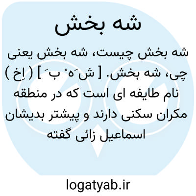 شه بخش. [ ش َه ْ ب َ ] ( اِخ ) نام طایفه ای است که در منطقه مکران سکنی دارند و پیشتر بدیشان اسماعیل زائی گفته میشد. ( یادداشت مؤلف ).