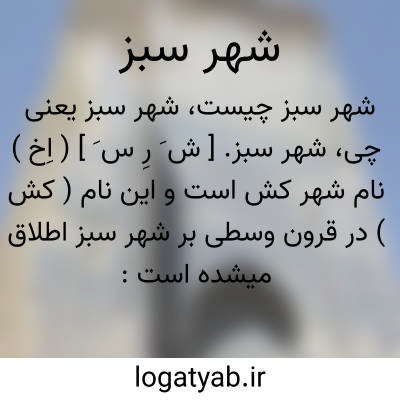 شهر سبز. [ ش َ رِ س َ ] ( اِخ ) نام شهر کش است و این نام ( کش ) در قرون وسطی بر شهر سبز اطلاق میشده است: