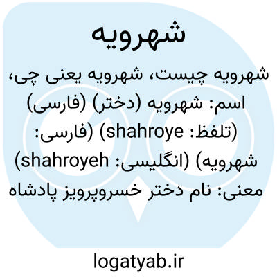 اسم: شهرویه (دختر) (فارسی) (تلفظ: shahroye) (فارسی: شهرویه) (انگلیسی: shahroyeh)