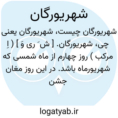 شهریورگان. [ ش َ ری وَ ] ( اِ مرکب ) روز چهارم از ماه شمسی که شهریورماه باشد. در این روز مغان جشن سازند و عید کنند. ( برهان ) ( از انجمن آرا ) ( ناظم الاطباء ) ( از آنندراج ). مرکب است از «شهریور» به اضافه «گان »، پسوند نسبت جشن جشنی که در شهریور روز ( چهارمین روز ) از شهریورماه ( ششمین ماه ) در ایران باستان برپا میداشتند. ( حاشیه برهان چ معین از یشتها ج 1 ص 93 و خرده اوستا ص 209 ).