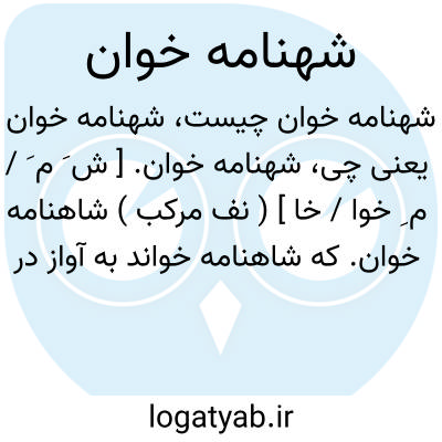 شهنامه خوان. [ ش َ م َ / م ِ خوا / خا ] ( نف مرکب ) شاهنامه خوان. که شاهنامه خواند به آواز در مجالس: