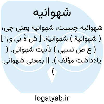 ( شهوانیة ) شهوانیة. [ ش َهَْ نی ی َ ] ( ع ص نسبی ) تأنیث شهوانی. ( یادداشت مؤلف ). || بمعنی شهوانی. ( از ناظم الاطباء ): نفس شهوانیة؛ روح طبیعیه. ( یادداشت مؤلف ).