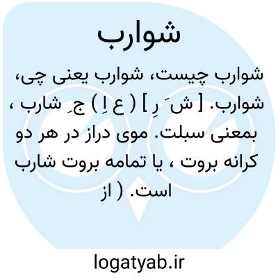 شوارب. [ ش َ رِ ] ( ع اِ ) ج ِ شارب، بمعنی سبلت. موی دراز در هر دو کرانه بروت، یا تمامه بروت شارب است. ( از منتهی الارب ) ( از اقرب الموارد ). || ج ِ شاربة، مؤنث شارب. ( از اقرب الموارد ). رجوع به شاربة و شارب شود. || رگهای حلق. ( منتهی الارب ) ( از اقرب الموارد ). || صخب الشوارب؛ هر بدصدا را گویند: حمار صخب الشوارب؛ خر سخت فریاد. ( از اقرب الموارد ). || راههای آب در حلق. ( منتهی الارب ). مجاری آب در حلق. ( از اقرب الموارد ).