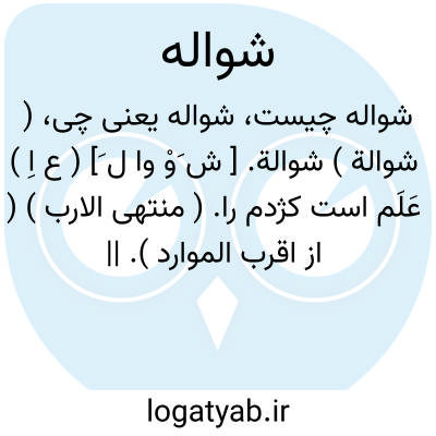 ( شوالة ) شوالة. [ ش َوْ وا ل َ] ( ع اِ ) عَلَم است کژدم را. ( منتهی الارب ) ( از اقرب الموارد ). || مرغی است. ( منتهی الارب ) ( ازاقرب الموارد ) ( مهذب الاسماء ) ( ناظم الاطباء ). || ( ص ) امراءة شوالة؛ زن سخن چین. ( منتهی الارب ). الشوالة؛ زن نَمام. زن سخن چین. ( از اقرب الموارد ).