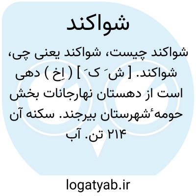 شواکند. [ ش َ ک َ ] ( اِخ ) دهی است از دهستان نهارجانات بخش حومه ٔشهرستان بیرجند. سکنه آن 214 تن. آب از قنات. محصول آن غلات و میوه. ( از فرهنگ جغرافیایی ایران ج 9 ).