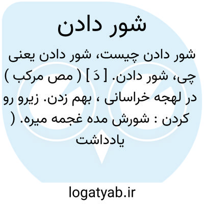 شور دادن. [ دَ ] ( مص مرکب ) در لهجه خراسانی، بهم زدن. زیرو رو کردن: شورش مده غجمه میره. ( یادداشت مؤلف ).