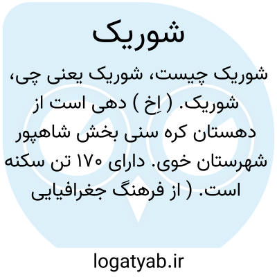 شوریک. ( اِخ ) دهی است از دهستان کره سنی بخش شاهپور شهرستان خوی. دارای 170 تن سکنه است. ( از فرهنگ جغرافیایی ایران ج 4 ).