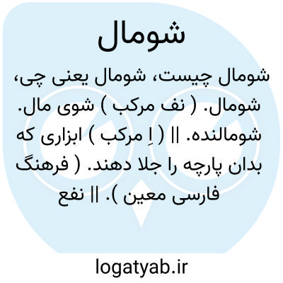 شومال. ( نف مرکب ) شوی مال. شومالنده. || ( اِ مرکب ) ابزاری که بدان پارچه را جلا دهند. ( فرهنگ فارسی معین ). || نفع و فایده و سودا. ( ناظم الاطباء ).