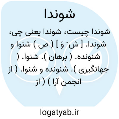 شوندا. [ ش َ وَ ] ( ص ) شنوا و شنونده. ( برهان ). شنوا. ( جهانگیری ). شنونده و شنوا. ( از انجمن آرا ) ( از آنندراج ). بیت زیر را جهانگیری برای این معنی آورده و رشیدی از او پیروی کرده است: