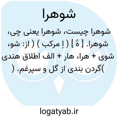 لغت نامه دهخدا شوهرا. [ هََ ] ( اِ مرکب ) ( از: شو، شوی + هرا، هار + الف اطلاق هندی )گردن بندی از گل و سپرغم. ( یادداشت مؤلف ). شوهره.