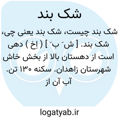 شک بند. [ ش َ ب َ ] ( اِخ ) دهی است از دهستان بالا از بخش خاش شهرستان زاهدان. سکنه 130 تن. آب آن از قنات تأمین میشود. محصول عمده آن غلات و لبنیات و ساکنان از طایفه شهنوازی هستند. راه اتومبیل رو ( فرعی ) دارد. ( فرهنگ جغرافیایی ایران ج 8 ).
