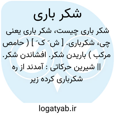 شکرباری. [ ش َ ک َ ] ( حامص مرکب ) باریدن شکر. افشاندن شکر. || شیرین حرکاتی: