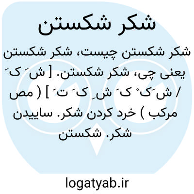 شکر شکستن. [ ش َ ک َ / ش َک ْ ک َ ش ِ ک َ ت َ ] ( مص مرکب ) خرد کردن شکر. ساییدن شکر. شکستن شکر را برای خوردن، چنانکه طوطی. ( یادداشت مؤلف ):