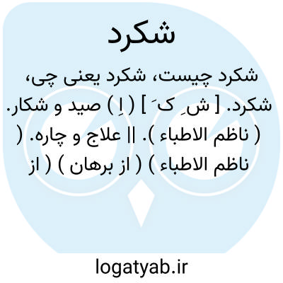 شکرد. [ ش ِ ک َ ] ( اِ ) صید و شکار. ( ناظم الاطباء ). || علاج و چاره. ( ناظم الاطباء ) ( از برهان ) ( از آنندراج ). || ( نف مرخم ) شکارکننده. ( از برهان ) ( آنندراج ).