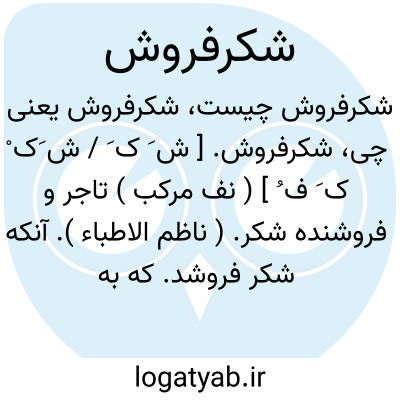 شکرفروش. [ ش َ ک َ / ش َک ْ ک َ ف ُ ] ( نف مرکب ) تاجر و فروشنده شکر. ( ناظم الاطباء ). آنکه شکر فروشد. که به فروش شکر پردازد: