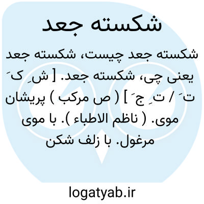 شکسته جعد. [ ش ِ ک َ ت َ / ت ِ ج َ ] ( ص مرکب ) پریشان موی. ( ناظم الاطباء ). با موی مرغول. با زلف شکن دار. || از اسمای محبوب است. ( از آنندراج ).