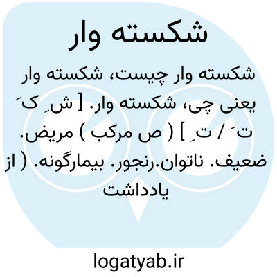 شکسته وار. [ ش ِ ک َ ت َ / ت ِ ] ( ص مرکب ) مریض. ضعیف. ناتوان.رنجور. بیمارگونه. ( از یادداشت مؤلف ):