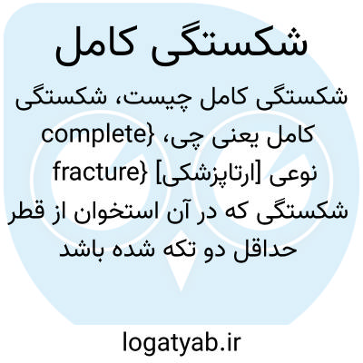 {complete fracture} [ارتاپزشکی] نوعی شکستگی که در آن استخوان از قطر حداقل دو تکه شده باشد