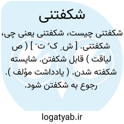 شکفتنی. [ ش ِ ک ُ ت َ ] ( ص لیاقت ) قابل شکفتن. شایسته شکفته شدن. ( یادداشت مؤلف ). رجوع به شکفتن شود.