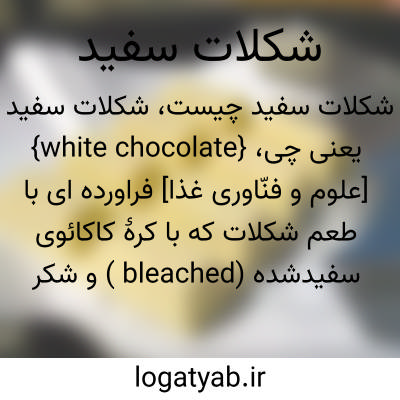 {white chocolate} [علوم و فنّاوری غذا] فراورده ای با طعم شکلات که با کرۀ کاکائوی سفیدشده (bleached ) و شکر سفید تهیه می شود