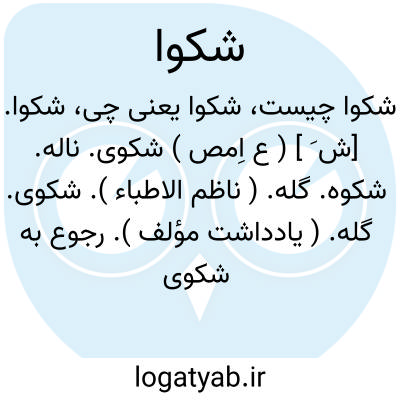 شکوا. [ش َ ] ( ع اِمص ) شکوی. ناله. شکوه. گله. ( ناظم الاطباء ). شکوی. گله. ( یادداشت مؤلف ). رجوع به شکوی شود.