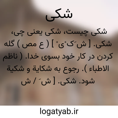 شکی. [ ش َ کی ی ] ( ع ص ) گله کرده شده. ( منتهی الارب )( ناظم الاطباء ) ( آنندراج ) ( از اقرب الموارد ). || دردناک. || اندک بیمار. || گله مند. ( ناظم الاطباء ) ( منتهی الارب ) ( آنندراج ).