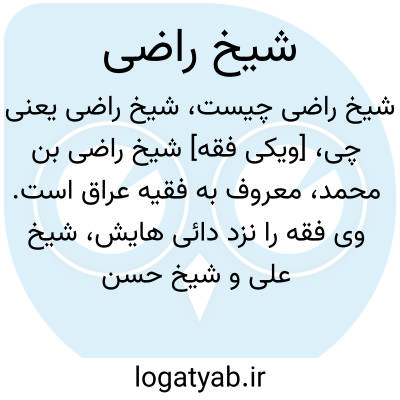 [ویکی فقه] شیخ راضی (ابهام زدایی). شیخ راضی ممکن است اشاره به اشخاص و شخصیت های ذیل باشد: • شیخ راضی بن محمد، معروف به فقیه عراق از علما و فقهای قرن سیزدهم هجری قمری• شیخ راضی آل یاسین، فرزند شیخ عبدالحسین بن شیخ باقر از علما و محققان و مورخان نجف• شیخ راضی کاظمی، از علمای مجاهد شیعه عراق در قرن سیزدهم و چهاردهم هجری• جعفر شیخ راضی، از علمای مجاهد عراق در قرن سیزدهم و چهاردهم هجری