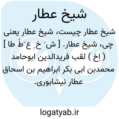 شیخ عطار. [ ش َ خ ِ ع َطْ طا ] ( اِخ ) لقب فریدالدین ابوحامد محمدبن ابی بکر ابراهیم بن اسحاق عطار نیشابوری. رجوع به عطار شود.