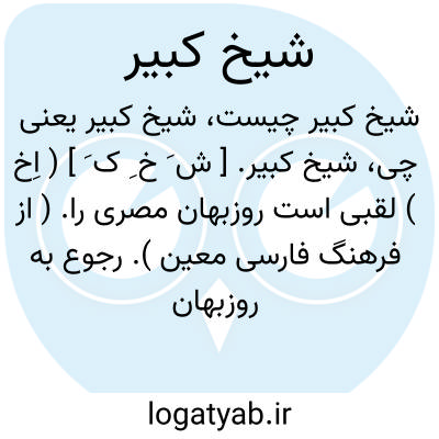 شیخ کبیر. [ ش َ خ ِ ک َ ] ( اِخ ) لقبی است روزبهان مصری را. ( از فرهنگ فارسی معین ). رجوع به روزبهان شود.