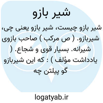 لغت نامه دهخدا شیربازو. ( ص مرکب ) صاحب بازوی شیرانه. بسیار قوی و شجاع. ( یادداشت مؤلف ): که این شیربازو گو پیلتن چه مرد است و شاه کدام انجمن.فردوسی.