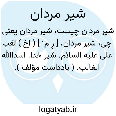 شیر مردان. [ رِ م َ ] ( اِخ ) لقب علی علیه السلام. شیر خدا. اسداﷲ الغالب. ( یادداشت مؤلف ). رجوع به شیر خدا شود.