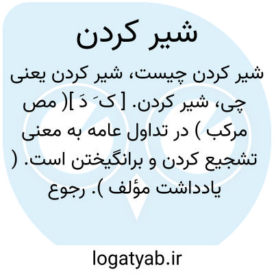 شیر کردن. [ ک َ دَ ]( مص مرکب ) در تداول عامه به معنی تشجیع کردن و برانگیختن است. ( یادداشت مؤلف ). رجوع به شیر شدن شود.