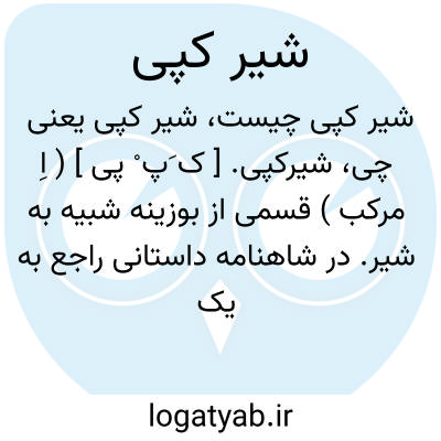 شیرکپی. [ ک َپ ْ پی ] ( اِ مرکب ) قسمی از بوزینه شبیه به شیر. در شاهنامه داستانی راجع به یک شیرکپی که به دست بهرام چوبینه کشته شده است آمده: شدند از بد شیرکپی هلاک برانگیخت زین بوم آباد خاک.فردوسی.همی شیرکپی برد دخترم بگوییم ننگی شود گوهرم.فردوسی.یکی شیرکپیش خواند همی دگر نیز نامش نداند همی.فردوسی.