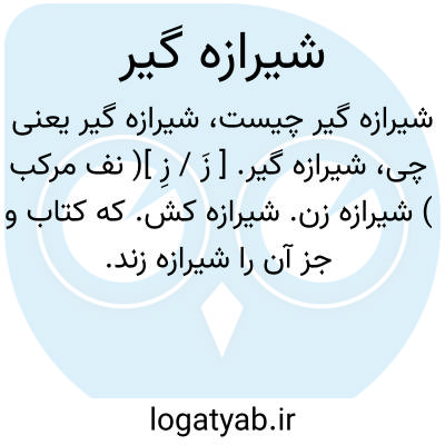 شیرازه گیر. [ زَ / زِ ]( نف مرکب ) شیرازه زن. شیرازه کش. که کتاب و جز آن را شیرازه زند. || پذیرنده شیرازه. کتاب یا دفتر که شیرازه گرفته باشد. شیرازه کرده: